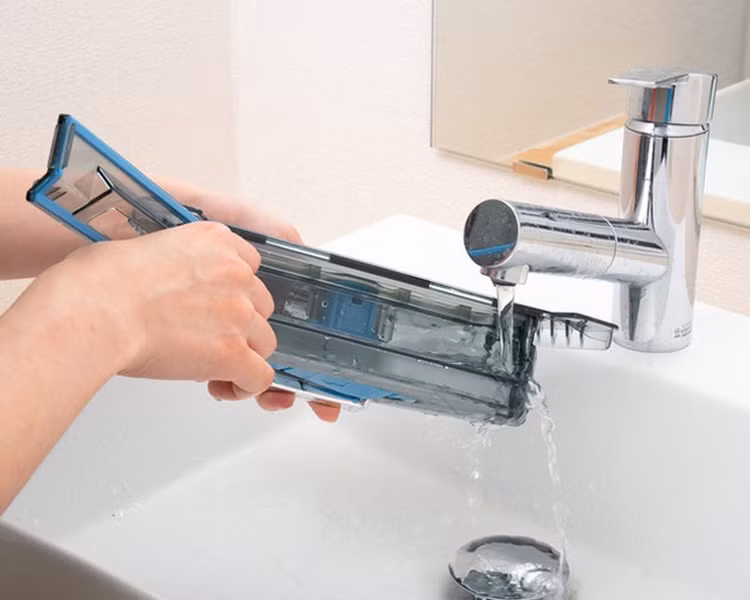 Khi robot hoàn thành xong việc dọn dẹp, lấy khăn lau ra khỏi tấm lau rồi giặt sạch sau đó phơi khô sau mỗi lần sử dụng. Tiếp đến, đổ hết phần nước bẩn trong ngăn đựng nước đi rồi vệ sinh lại với nước sạch trước khi lắp lại vào máy.