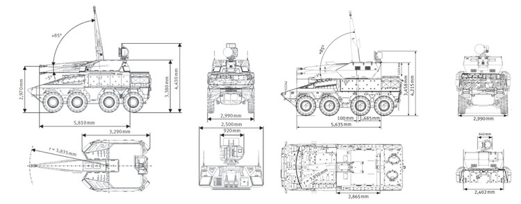 Tháp pháo hỗ trợ bộ thu thập mục tiêu radar kép với mảng quét điện tử chủ động cố định hoặc ăng-ten AESA để có phạm vi phủ sóng 360 độ, kết hợp với nhiều gói cảm biến quang điện tử gắn trên nóc để theo dõi và nhận dạng mục tiêu cả ngày.