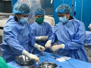 Kíp mổ do Ts Cao Việt Tùng, Bv Nhi Tw; Bs Phạm Ngọc Mười; Bs Phí Xuân Thi và các kỹ thuật viên Bệnh viện Sản Nhi Quảng Ninh tiến hành. Mỗi ca phẫu thuật khoảng hơn 30 phút, trẻ được gắn hệ thống máy theo dõi mạch, huyết áp, điện tâm đồ…