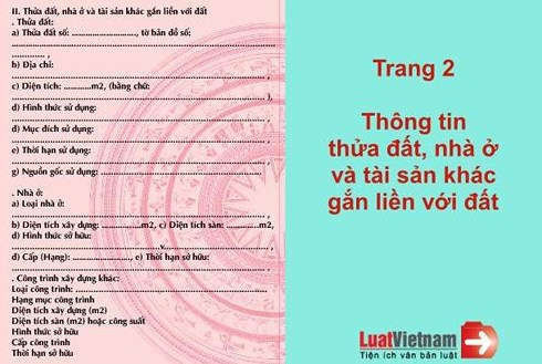 - Quốc hiệu, Quốc huy và dòng chữ "Giấy chứng nhận quyền sử dụng đất, quyền sở hữu nhà ở và tài sản khác gắn liền với đất" in màu đỏ;