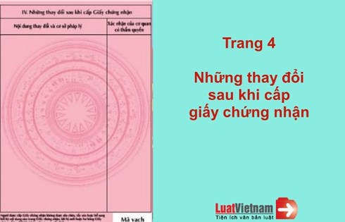 - Mục "IV. Những thay đổi sau khi cấp Giấy chứng nhận" như trang 4 của Giấy chứng nhận.