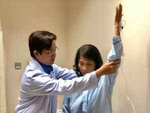 ThS BS. Nguyễn Phúc Thịnh – Khoa Chấn thương chỉnh hình BV Đại học Y dược TPHCM thăm khám cho người bệnh.