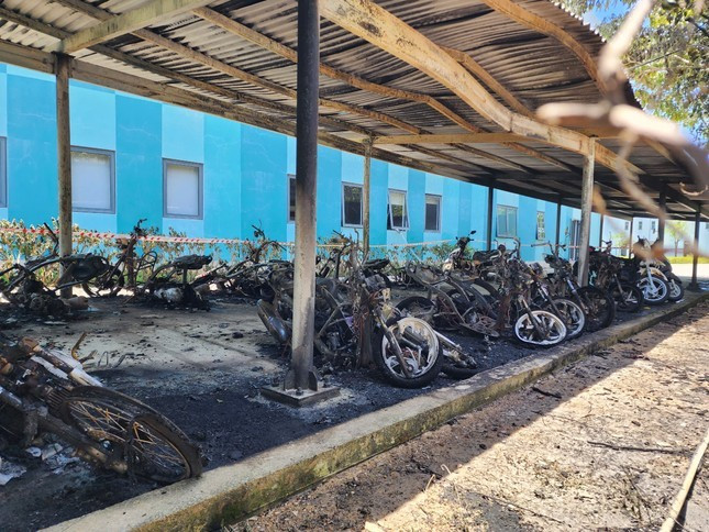 Ghi nhận của PV, có 19 xe máy bị cháy. Trong đó có 15 xe máy bị thiêu rụi hoàn toàn, trơ khung sắt, 4 xe máy còn lại hư hại nặng. Rất may vụ cháy không gây thiệt hại về người.