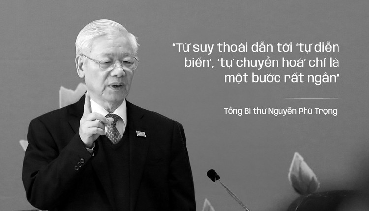 Tổng Bí thư Nguyễn Phú Trọng nhấn mạnh: "Từ sự suy thoái về tư tưởng chính trị, đạo đức, lối sống dẫn tới "tự diễn biến", "tự chuyển hóa" chỉ là một bước ngắn, thậm chí rất ngắn, nguy hiểm khôn lường”, tại hội nghị cán bộ toàn quốc quán triệt, triển khai thực hiện Nghị quyết Hội nghị Trung ương 4 khoá XIII ngày 9/12/2021.