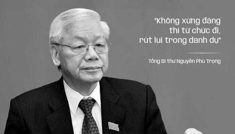Tiếp xúc cử tri trước thềm kỳ họp thứ 5 Quốc hội khóa XV ngày 13/5/2023, Tổng Bí thư Nguyễn Phú Trọng nhấn mạnh đấu tranh phòng chống tham nhũng, tiêu cực cũng phải toàn dân, tất cả các cấp cùng làm. "Đã không xứng đáng thì từ chức đi. Vừa nhẹ nhàng, êm ái và tự giác rút lui. Rút lui trong danh dự là tốt nhất".