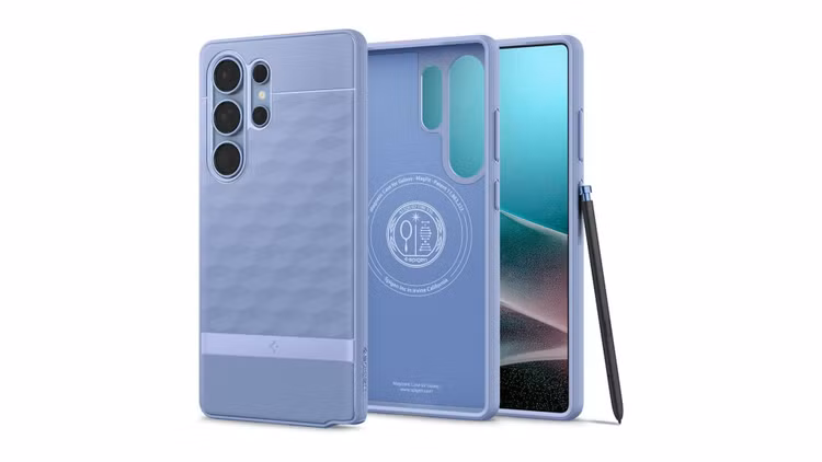 Quan sát kỹ hơn, có thể thấy hình ảnh này là một bản dựng của chiếc Galaxy S25 Ultra đang nằm trong ốp lưng của hãng Spigen, thậm chí logo của Spigen cũng chưa được xóa.