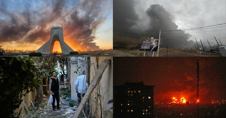 Thành phố Tehran bị tàn phá nặng nề, người dân hoảng loạn khi không kích dữ dội kéo dài qua đêm. WHO cảnh báo về tác động 'Mưa đen' đến người dân Tehran.