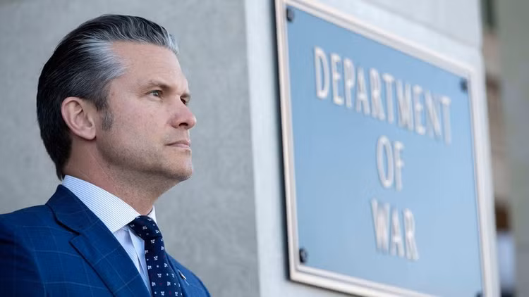 Bộ trưởng Chiến tranh Mỹ Pete Hegseth đứng trước trụ sở Lầu Năm Góc.