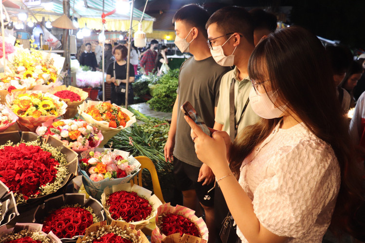 Nhiều cặp đôi cũng đến đây mua hoa nhân dịp 20/10.
