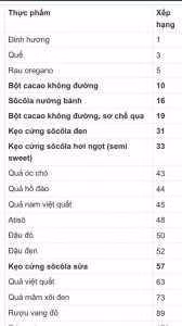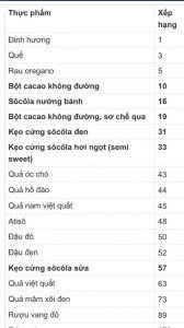 Năm 2007, Bộ Nông nghiệp Hoa Kỳ đã công bố báo cáo so sánh chỉ số ORAC tính trên 100g của hơn 100 loại thực phẩm khác nhau. Một điều đáng kinh ngạc ở đây là, xếp sau các loại gia vị và một số loại quả mọng, thì sôcôla đen (không ngọt, không kiềm hóa và làm từ bột cacao nguyên chất) là loại thực phẩm có lượng chất chống oxy hóa cao hơn bất kỳ loại thực phẩm nào được liệt kê trong bảng chỉ số ORAC.