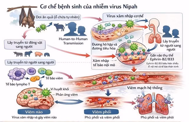 Virus Nipah là một virus nguy hiểm hiếm gặp, có thể gây viêm não và viêm phổi nặng, với tỷ lệ tử vong cao nếu không được phát hiện và chăm sóc kịp thời.