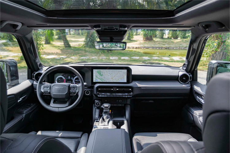Thiết kế nội thất Toyota Land Cruiser Prado 2024 cũng sở hữu đường nét khỏe khoắn, tương đồng với ngoại thất. Đi cùng với đó là loạt tiện nghi cao cấp cùng độ hoàn thiện cao như: vô-lăng xe được bọc da, 3 chấu, chỉnh điện 4 hướng có nhớ vị trí, tích hợp nhiều nút bấm chức năng. Đồng hồ thông tin với màn hình 12.3 inch. Màn hình giải trí trung tâm tăng kích thước từ 7 inch lên 12.3 inch, kết nối Apple Carplay hoặc Android Auto.