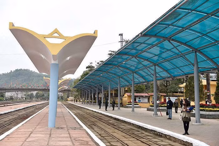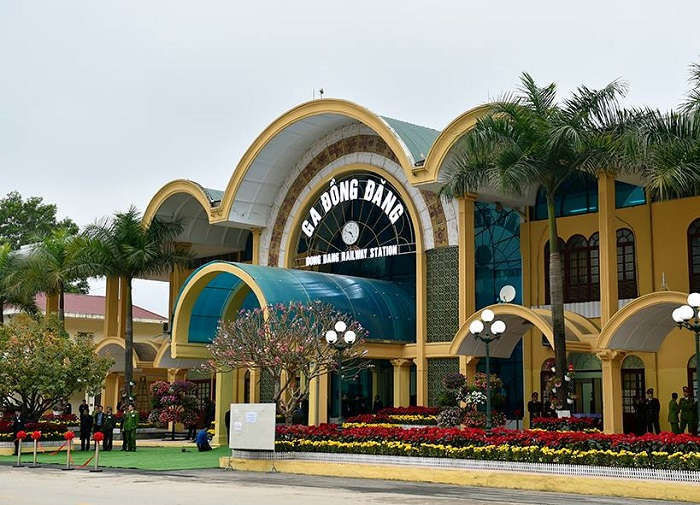 Ga Đồng Đăng "khoác áo mới" với những chậu hoa tươi được trang trí bên ngoài nhà ga