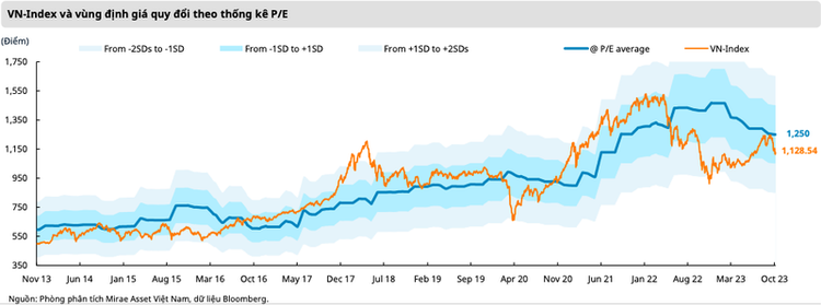 Thị trường chứng khoán Việt Nam đã phục hồi kể từ tháng 11/2022 đến đầu tháng 9/2023, đưa định giá P/E của thị trường từ mức 11x vào giữa tháng 11/2022 lên 17,1x vào đầu tháng 9/2023.