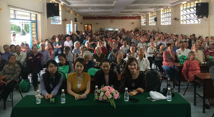 ThS.BS.CKI Lê Xuân Sơn, Khoa Chấn thương Chỉnh hình, BV Sài Gòn ITO Phú Nhuận và TS.BS Nguyễn Thị Mỹ Hạnh, Trưởng Khoa Nhịp tim học, BV Nhân dân 115 TPHCM đang giao lưu cùng cùng các cô chú hội viên Hội người Cao tuổi.