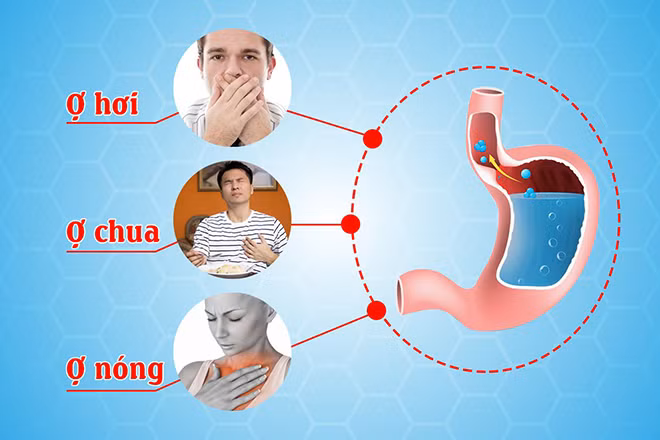 Ợ hơi, ợ chua: Khi thức ăn lên men do ứ trệ ở trong dạ dày lâu ngày sẽ sinh ra các triệu chứng khó chịu như ợ chua, ợ hơi, hoặc ợ nóng. Nếu tình trạng này kéo dài thì tốt nhất bạn nên đi khám vì axit trong dịch vị dạ dày trào ngược lên thực quản nhiều lần sẽ làm tổn thương niêm mạc tại đây gây ho và viêm họng.