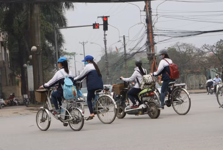 Đối với các em đi học bằng xe đạp, xe đạp điện, xe gắn máy; ngoài trang bị thực hành bằng việc dạy con chạy xe thông thạo, vững vàng thì việc nhắc nhở, quán triệt con không được phóng nhanh vượt ẩu, không được chạy xe hàng 2 hàng 3 trên đường… là rất cần thiết. Nên dặn con chạy xe hàng 1, phải đi sát vào lề đường bên tay phải của mình. Đặc biệt là khi nhìn thấy các xe ô tô lớn, nhất là các xe tải, xe container thì phải chủ động tránh xa. Nhắc con trong lúc chạy xe không được đùa nghịch, không được “kẹp 2”, “kẹp 3”, không được phóng nhanh vượt ẩu, tuyệt đối chấp hành đèn tín hiệu giao thông...