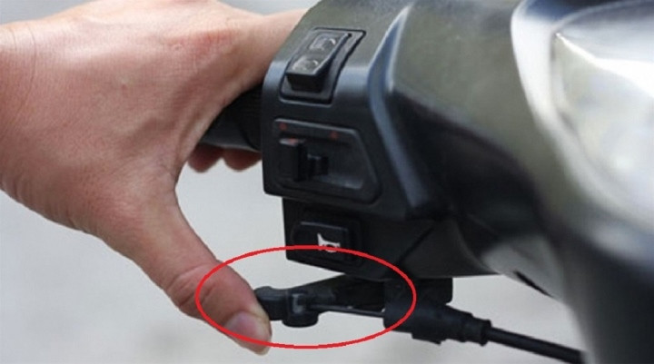 Chiếc cần gạt này chính là một tính năng an toàn của xe giúp khóa phanh bánh sau. Cách sử dụng chức năng của cần gạt này rất đơn giản, đầu tiên các bạn bóp chặt phanh sau và giữ nguyên, rồi gạt cần gạt này để nó khóa tay phanh lại. Khi này bánh sau sẽ được phanh chặt, xe sẽ không bị trôi khi dừng trên bề mặt đường dốc. Để tiếp tục di chuyển, bạn chỉ việc bóp mạnh phanh rồi thả ra.