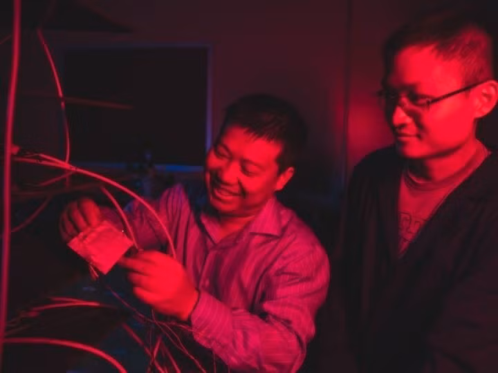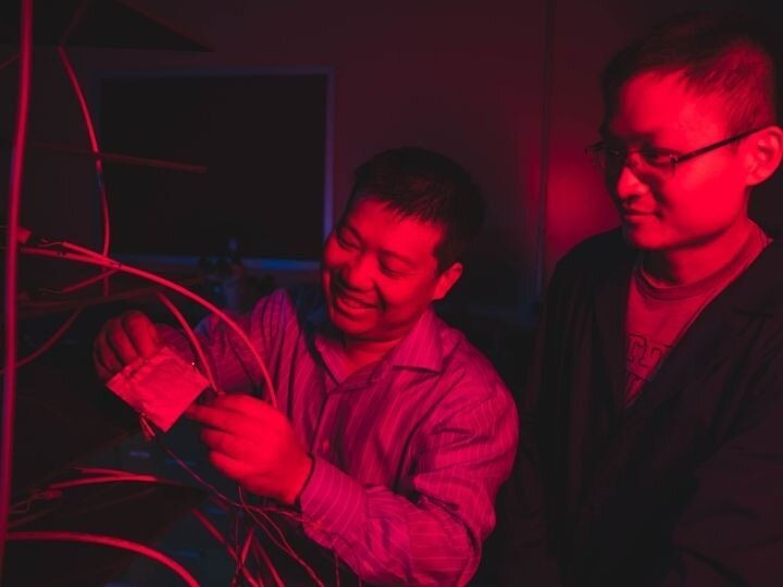GS Yan Yao và nhà nghiên cứu Ye Zhang làm việc với pin natri thể rắn. Ảnh Đại học Houston