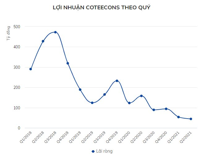 Trở lại với Coteccons, đơn vị này liên tục sa sút dưới thời nhóm lãnh đạo mới liên quan Kussto Group. Doanh thu thuần quý II giảm đến 36% xuống 2.550 tỷ đồng và lợi nhuận sau thuế giảm 71% về 45 tỷ đồng. Đây là quý có lợi nhuận thấp nhất trong 5 năm gần nhất của doanh nghiệp.