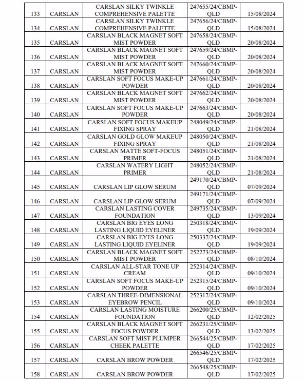 Danh mục 184 số tiếp nhận phiếu công bố sản phẩm mỹ phẩm bị thu hồi kèm theo Quyết định số 52/QĐ-QLD.