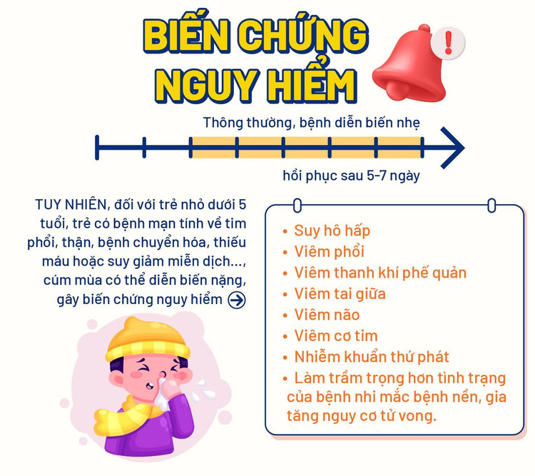 Vì vậy, cha mẹ cần nhận biết sớm các triệu chứng của cúm mùa để chủ động xử trí và đưa trẻ đến bệnh viện thăm khám kịp thời, tránh các biến chứng nguy hiểm.