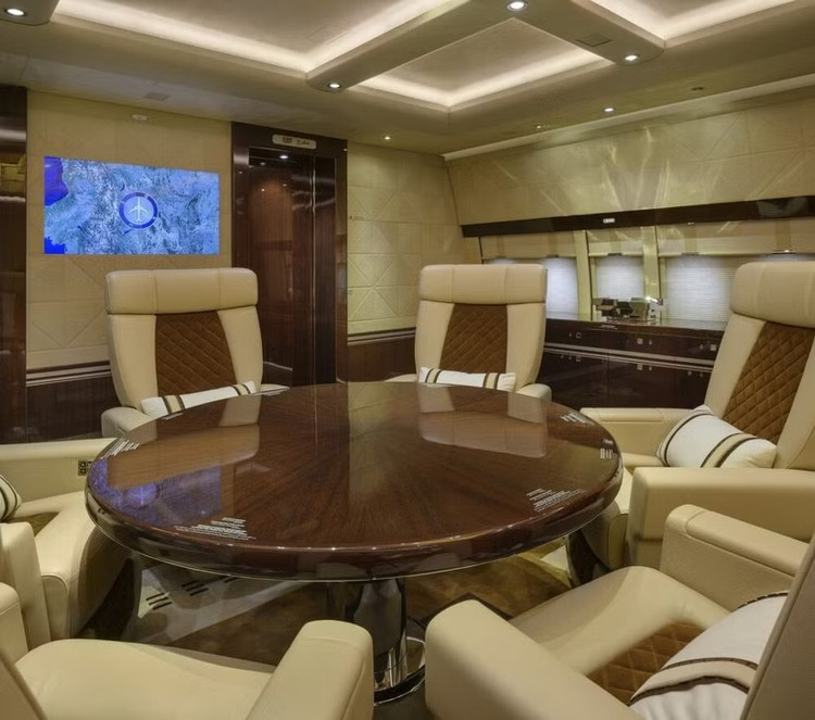 Ngay phía sau máy bay là khoang ghế hạng thương gia, lý tưởng để tiếp đón đoàn tùy tùng hoặc nhân viên khác. Đối với Tổng thống Trump, đây có thể là chỗ ngồi cho báo chí - một sự nâng cấp đáng kể so với chỗ ngồi hạng phổ thông thường dành cho giới truyền thông trên những chiếc Air Force One 747 hiện tại.