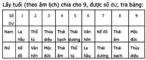 TS Vũ Thế Khanh nhấn mạnh, các thầy cúng thường lấy tiền xem sao và cúng sao giải hạn cho bạn, đó là mê tín, trong khi cách tính sao vô cùng đơn giản, chúng ta có thể tự xem hằng năm mình ứng với “sao” gì. Ví dụ, năm nay bạn 48 tuổi (tính theo âm lịch), bạn chia cho 9, sẽ dư 3, nếu là nam thì bạn ứng với sao Thủy Diệu, nữ ứng với Mộc Đức (Xem bảng tính theo chỉ dẫn)