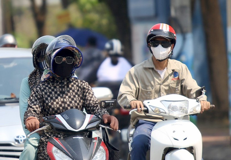 Những người có công việc bắt buộc phải ra đường đều mặc quần áo chống nắng, đeo khẩu trang, kính râm kín mít từ đầu đến chân.