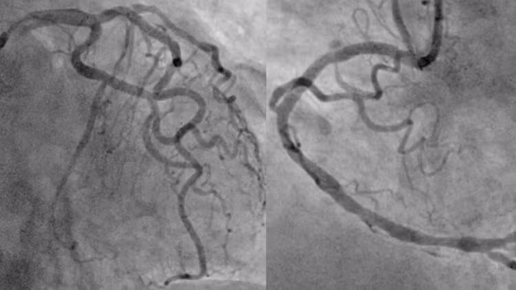 Người bệnh sau đó được đưa đến phòng DSA để được chụp động mạch vành cấp cứu. Kết quả chụp mạch vành cho thấy tắc hoàn toàn động mạch mũ, hẹp nặng động mạch liên thất trước và vành phải.