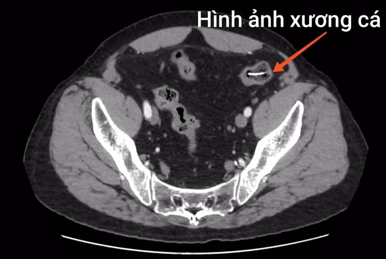 Hình ảnh xương cá đâm thủng ruột bệnh nhân/Ảnh BV Bệnh Nhiệt đới Trung ương