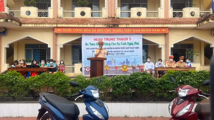 Trước đó, Đội Cảnh sát giao thông trật tự (Công an huyện M’Đrắk) cũng đã tuyên truyền tại trường THCS Ngô Quyền và cùng phối hợp với Công ty Head Trung Thạch 5 M’Drắk, Trường THPT Nguyễn Trường Tộ tổ chức chương trình “An toàn giao thông cho nụ cười ngày mai”.