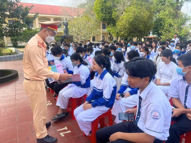 Đồng thời, tập trung đi sâu tuyên truyền các quy định về học sinh không được đi xe máy đến trường; các hành vi vi phạm thường xảy ra ở lứa tuổi học sinh khi tham gia giao thông như: không đội mũ bảo hiểm khi tham gia giao thông, chạy quá tốc độ, chở quá số người quy định, đi không đúng làn đường quy định và hậu quả của tai nạn giao thông; những cảnh báo, các nội dung và mức xử phạt các hành vi vi phạm về trật tự an toàn giao thông; phòng tránh tai nạn giao thông, các hành vi bị nghiêm cấm khi tham gia giao thông; văn hóa khi tham gia giao thông; kiến thức bổ sung về phương tiện xe đạp điện, xe máy điện và giao lưu hiểu biết kiến thức pháp luật về luật giao thông đường bộ đối với học sinh nhà trường.