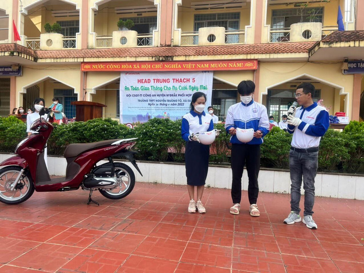 Ngoài ra, các em học sinh còn được trải nghiệm thực hành kỹ năng lái xe an toàn thực tế cùng giáo viên dưới sự hướng dẫn của ban tổ chức và có cơ hội nhận được nhiều phần quà hấp dẫn từ công ty Head Trung Thạch 5.