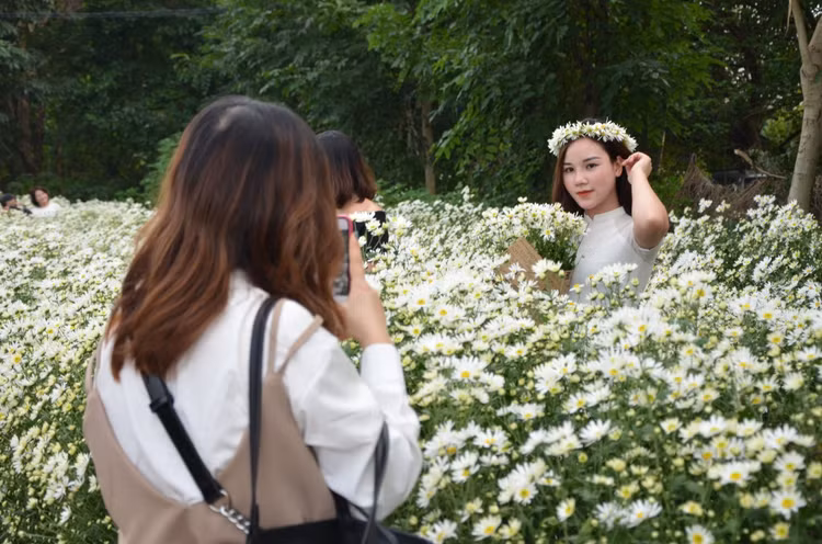 Dù cúc họa mi mới bắt đầu vào mùa nhưng đã khá đông khách hàng đặt lịch chụp ảnh. “Hôm nay có khoảng 3-4 người liên hệ hẹn tôi chụp ảnh. Nhưng thời gian có hạn, thời điểm cho ra những bức hình đẹp nhất là vào sáng sớm hoặc cuối chiều nên tôi phải đành hẹn một vài khách sang ngày khác”- anh Lã Vũ Thắng (29 tuổi, quận Hà Đông) – thợ chụp ảnh tự do nói.