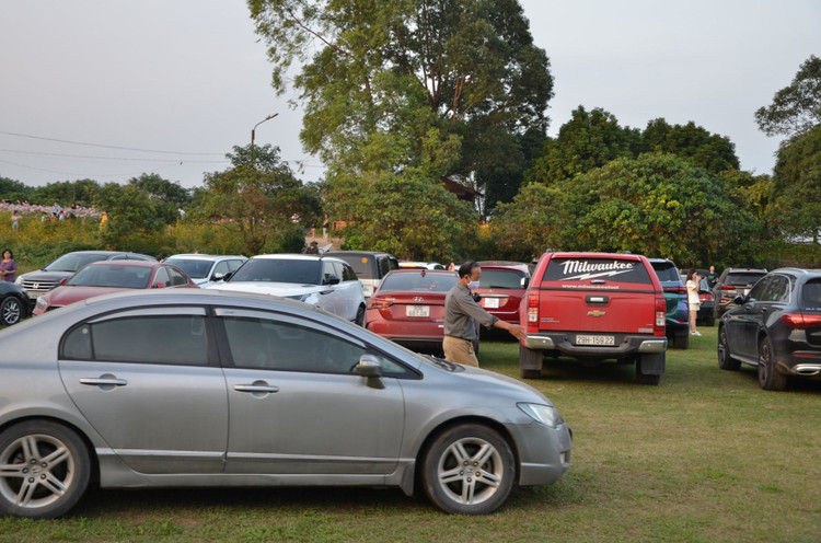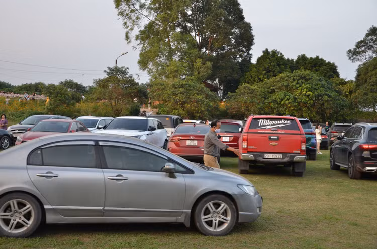Bãi đậu xe kín chỗ, bảo vệ bận rộn điều khiển sắp xếp chỗ để xe