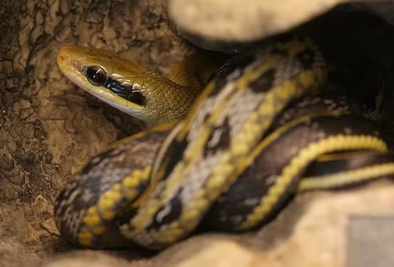 Theo tìm hiểu, rắn hắc mi cẩm xà còn được gọi là rắn mi đen, tên khoa học là Orthriophis taeniurus, thường di chuyển trong và xung quanh nhà, leo trèo giỏi, đôi khi xuất hiện trên mái hiên, mái nhà, cũng có thể gặp ở trảng cỏ, nương rẫy, đồi núi.