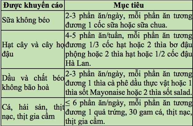Cá và hải sản: Trong cá và nhiều loại hải sản có chứa các chất béo có lợi như Omega-3 giúp giảm các nguy cơ tim mạch, giảm tỷ lệ mắc hội chứng chuyển hoá. Khuyến cáo nên ăn cá hoặc hải sản > 2 lần/tuần.
