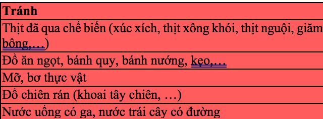 - Tăng cường sử dụng thực phẩm tươi, hạn chế thực phẩm chế biến sẵn.