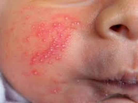Virus Herpes simplex (HSV) có thể gây nên nhiễm khuẩn da cấp tính và biểu hiện mụn nước thành nhóm trên nền da đỏ.