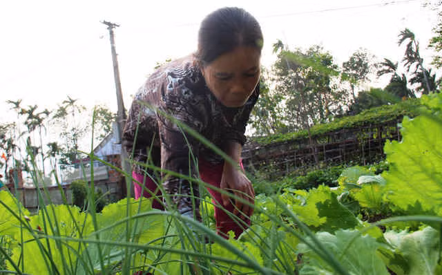Sau những ngày buồn bã nhận sổ lương hưu, bà Lan lại vác cuốc ra đồng đắp bờ, nhổ cỏ.
