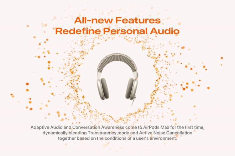 Âm thanh thích ứng - AirPods Max hỗ trợ Âm thanh thích ứng, tự động điều chỉnh mức độ khử tiếng ồn (ANC) dựa trên môi trường xung quanh.
