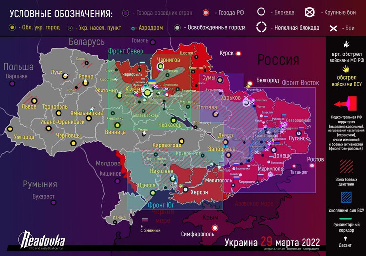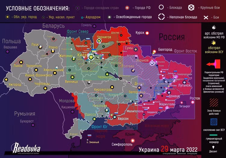 Ngày 29/3, Bộ Quốc phòng Nga quyết định giảm mạnh hoạt động quân sự trên hướng Kiev và Chernihiv sau kết quả của các cuộc đàm phán Nga-Ukraine.