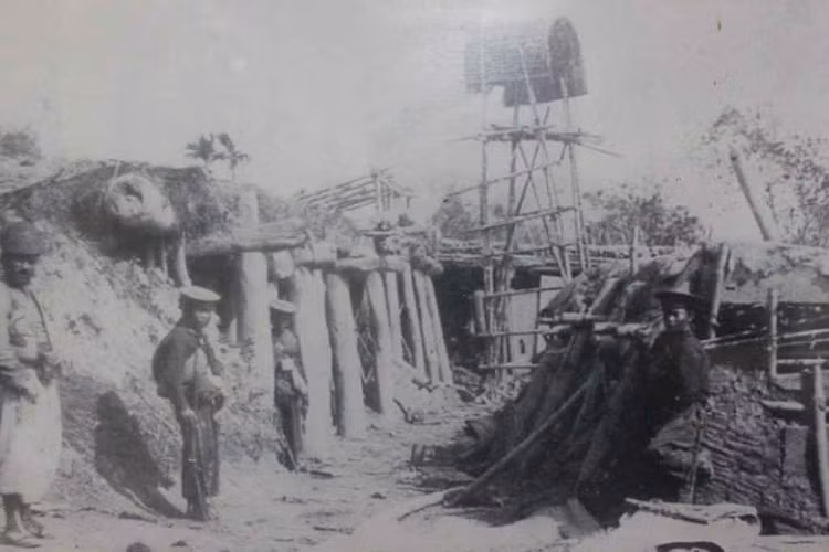 Phải khó khăn lắm chúng tôi mới tìm lại được một bức ảnh nhạt nhoà về Đồn Hố Chuối do một sỹ quan Pháp chụp được vào những năm 1900.