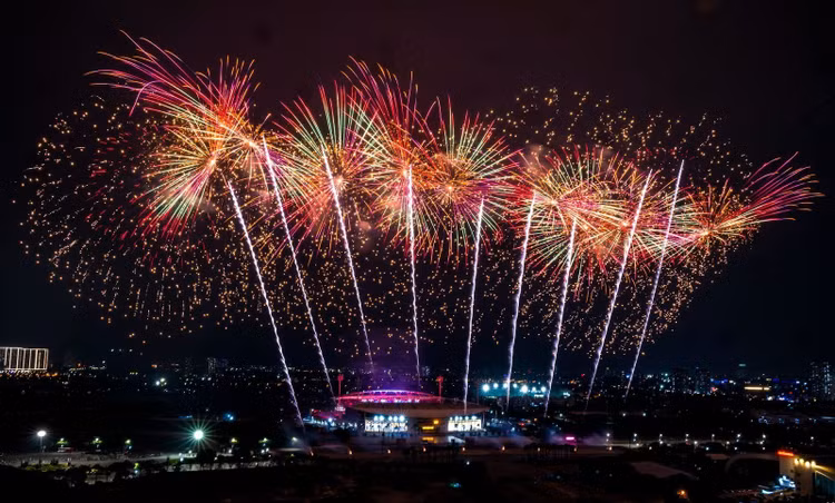 Những chủng loại pháo lần đầu tiên xuất hiện tại Việt Nam cùng hiệu ứng nghệ thuật lập trình riêng cho đại nhạc hội. Ảnh: Sun Group