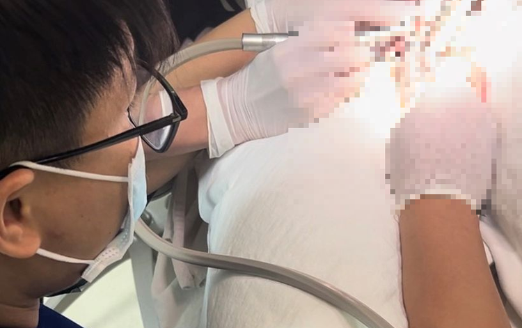 Sau khi thăm khám đánh giá tổn thương bác sĩ Khoa Nam học phối hợp với bác sĩ Khoa Răng, Bệnh viện Trung ương Quân đội 108 quyết định sử dụng tay khoan nha khoa, mũi khoan cắt kim cương để cắt dị vật, sau can thiệp dị vật được lấy bỏ mà không làm tổn thương thêm cho dương vật.