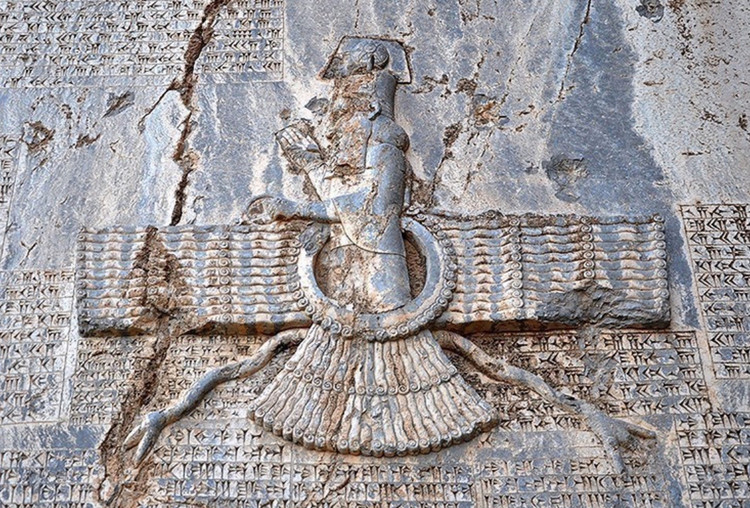 Di tích quan trọng nhất tại khu khảo cổ này là một bức phù điêu và một bản khắc chữ hình nêm do Darius I cho xây dựng vào năm 521 trước Công nguyên để kỷ niệm triều đại của ông đối với Đế quốc Ba Tư. Bức phù điêu của Darius mô tả ông như một vị vua, cầm cung tên, chân ông đặt trên ngực một người đàn ông nằm ngửa trước mặt ông.