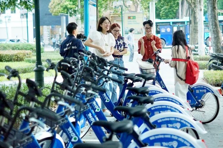 Box: Mục tiêu tăng cường kết nối giữa bến xe buýt, nhà ga đường sắt đô thị, các khu đô thị, mua sắm… nhằm giảm thiểu phương tiện cá nhân, UBND TP Hà Nội đã chấp thuận để Sở GTVT và nhà đầu tư là Công ty CP Tập đoàn Trí Nam triển khai dự án xe đạp công cộng giai đoạn 1 tại 6 quận nội thành.