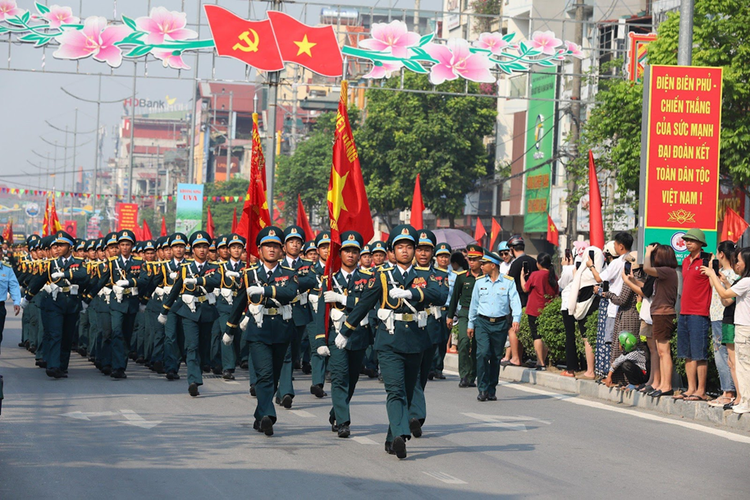 Các lực lượng sau khi diễu hành qua lễ đài sân vận động, tiếp tục di chuyển qua những tuyến đường trung tâm thành phố, tiến về Tượng đài Chiến thắng Điện Biên Phủ trong sự đón chào, cổ vũ nhiệt tình của người dân dọc hai bên đường.