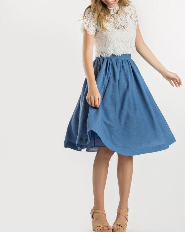 Chân váy full skirt thường có độ dài đến đầu gối hoặc giữa bắp chân, thiết kế đầy nữ tính và ngọt ngào.
